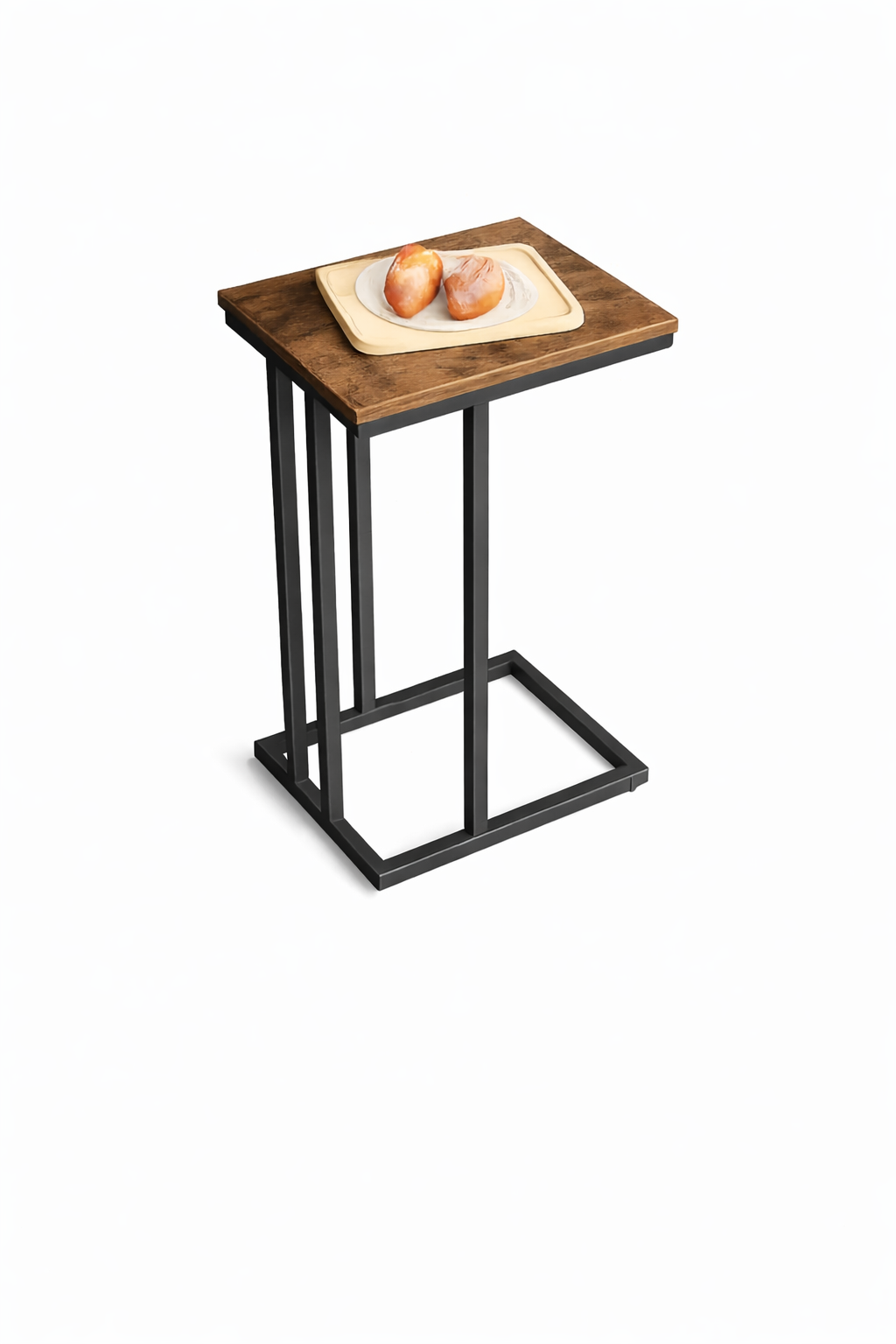 Upgrade your living space with this modern C-shaped side table, designed to slide easily under sofas and beds. Perfect for snacks, laptops, or décor, this table features a durable wooden top and strong black metal frame.
